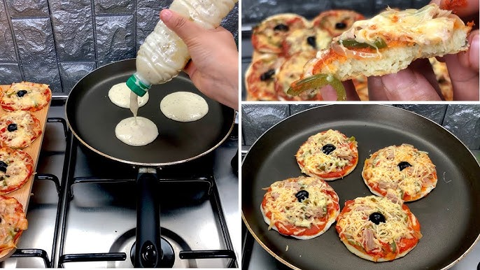 - صبي عجينة البيتزا السائل في مقلاة مدهونة بالزيت على درجة حرارة متوسطة.