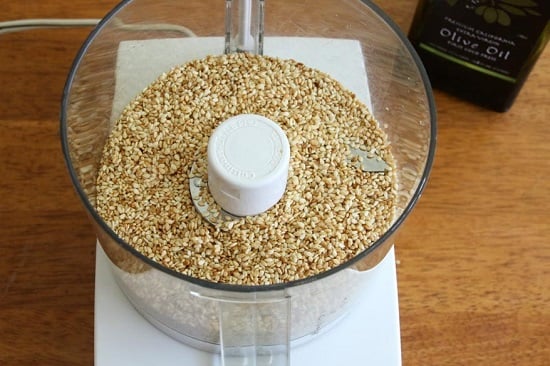 - ضعي الطحينة الخام بعد إعداداها بالسمسم كما أوضحنا في الأعلى في بولة.