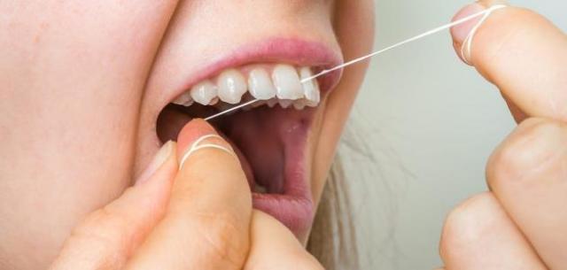 - يكرر تمرير خيط الأسنان برفق على الأسنان ثم يشطف الفم بالماء بعد التنظيف.