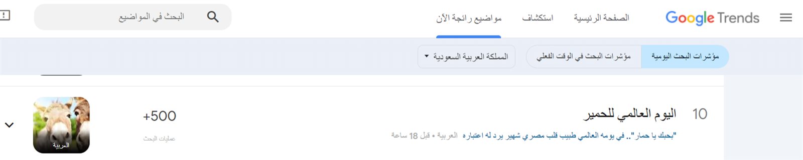 اليوم العالمي للحمير.. من أين جاءت فكرة الاحتفال باليوم العالمي للحمار؟ سؤال تصدر محركات البحث خلال الساعات الماضية، وتصدر التريند.