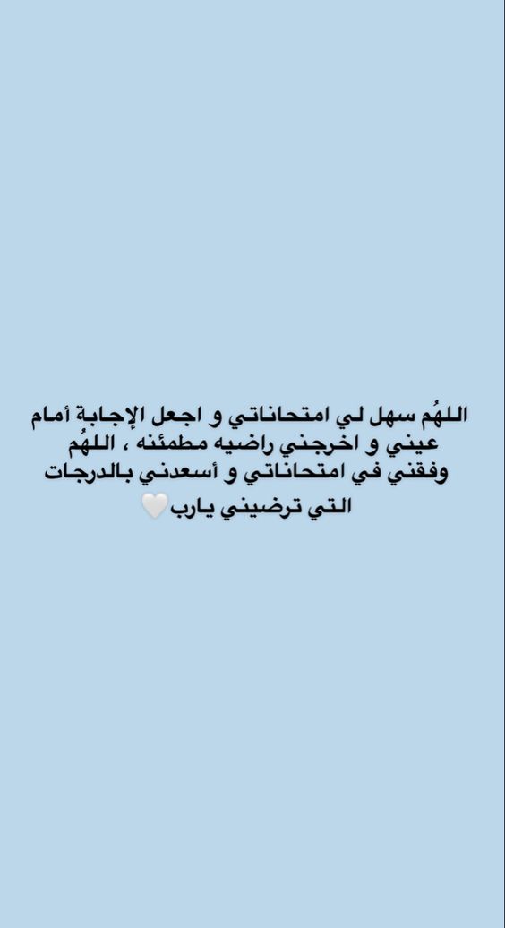 - اللهم اجعل الامتحان يمرّ على أبنائي كشربة ماء وألهمهم الصواب وحسن الجواب، والرشد والرشاد، يا رب العالمين.