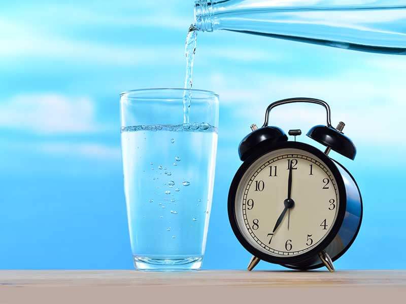 أفضل وقت لشرب الماء سيكون بكل تأكيد في الصباح فور الاستيقاظ من النوم، وخصوصا إذا ما أضيف عصير الليمون إلى كوب الماء لإمداد الجسم صباحا بدفعة مشرقة من المغذيات النباتية المضادة للأكسدة وفيتامين C والبوتاسيوم.