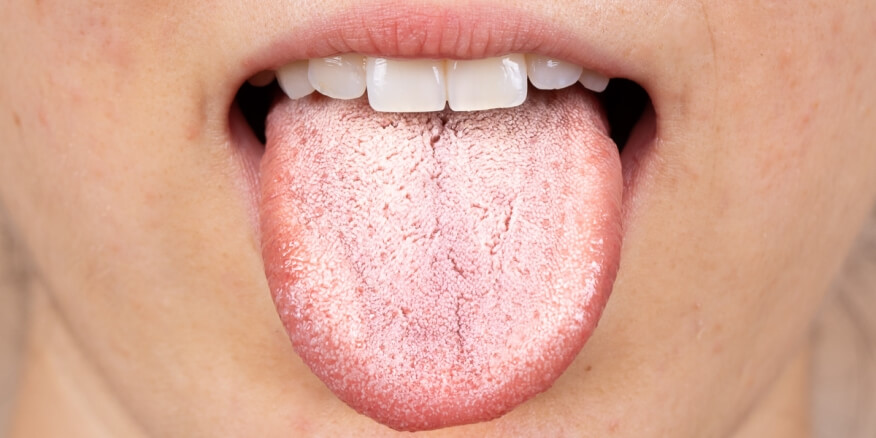 يمكن للطبقة البيضاء على اللسان أن تشير إلى بعض الأشياء المختلفة، فقد يكون علامة على مرض القلاع الفموي، وهو عدوى فطرية تسببها خميرة المبيضات، كما يمكن أن يكون أيضًا علامة على الجفاف أو تراكم البكتيريا والحطام.