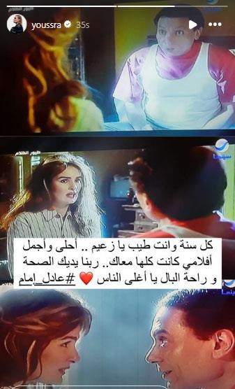 عادل امام.. احتفلت النجمة يسرا بعيد ميلاد الزعيم عادل إمام الذي يوافق 17 مارس وذلك عبر استوري حسابها الرسمي على "انستجرام".