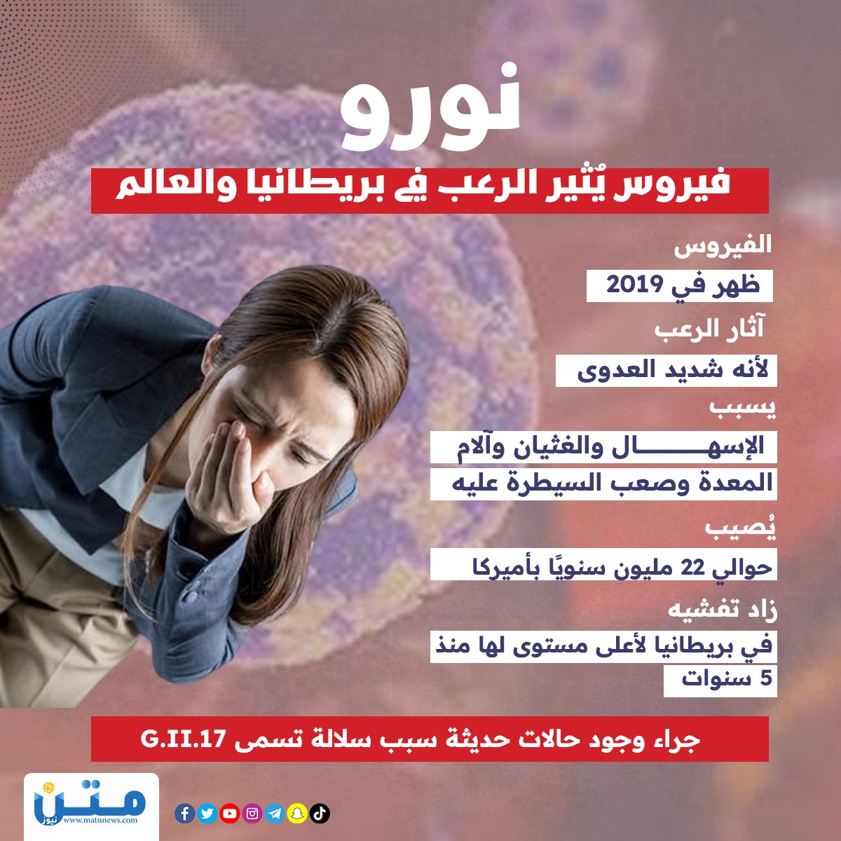 نورو.. فيروس يُثير الرعب في بريطانيا والعالم (انفوجراف)