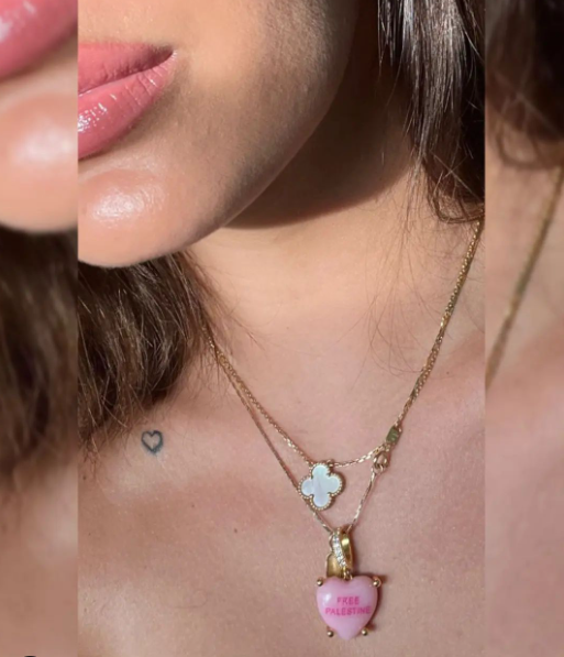 وأيضًا قبل يومٍ واحد من نشر ماريا صور الاحتفال بتحقيق فريق مانشستر سيتي لقب الدوري الإنجليزي، نشرت صورة لقلادة ذهبية ترتديها مزينة بقلب وردي اللون مكتوب عليه "فلسطين حرة".