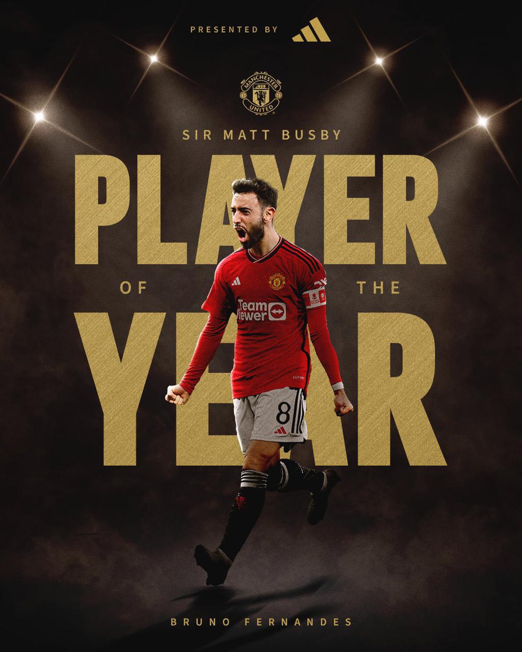 توج النجم البرتغالي برونو فيرنانديز قائد مانشستر يونايتد، بجائزة لاعب العام في صفوف الشياطين الحمر للمرة الثالثة له خلال مسيرته في أولد ترافورد.