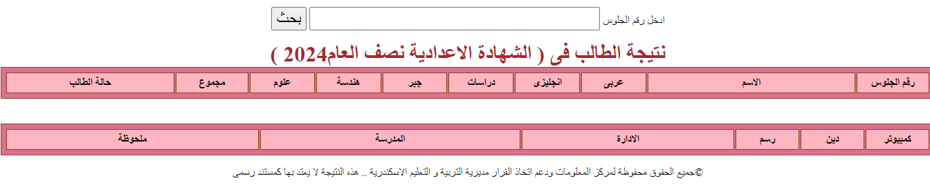 نتيجة الشهادة الإعدادية محافظة الإسكندرية برقم الجلوس