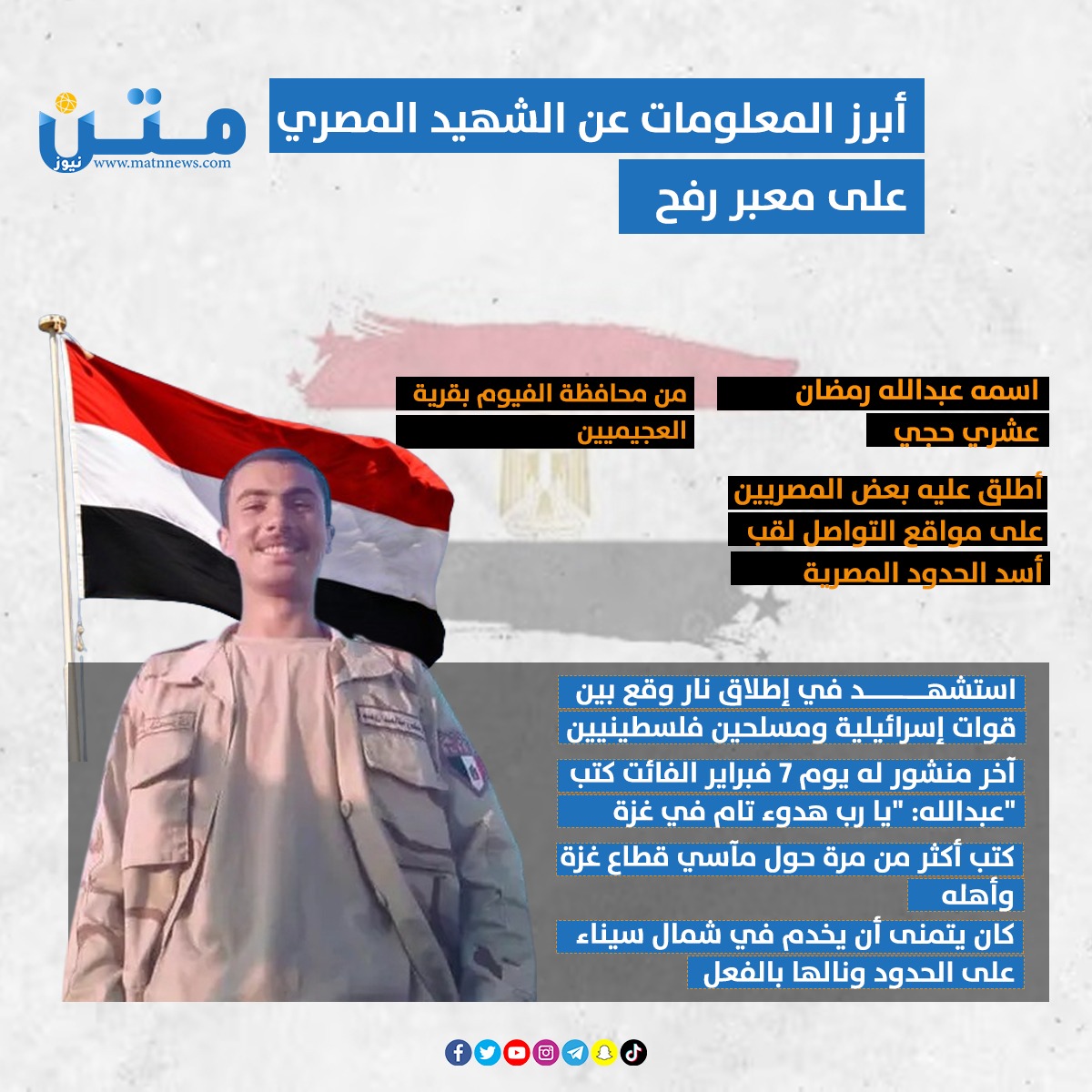 أبرز المعلومات عن الشهيد المصري على معبر رفح (إنفوجراف)