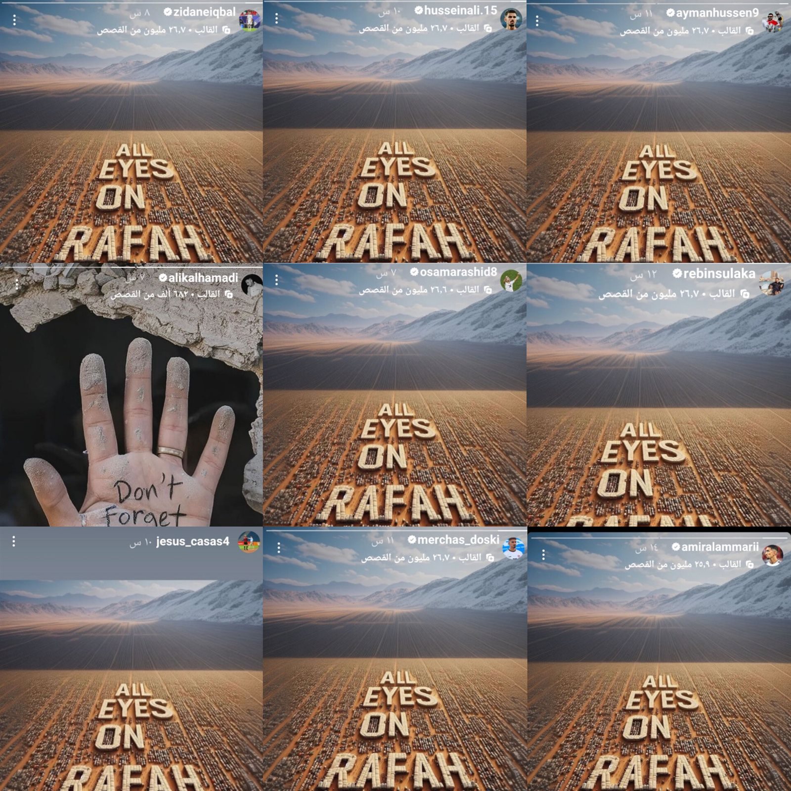 حملة لدعم أهل غزة من نجوم كرة القدم بعد مذبحة الخيام.. "كل العيون على رفح"