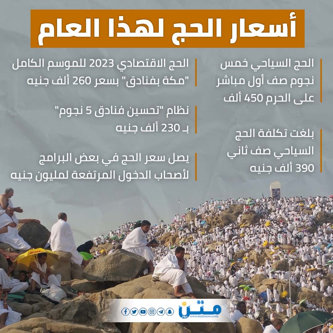 - بلغت تكلفة الحج السياحي صف ثاني 390 ألف جنيه