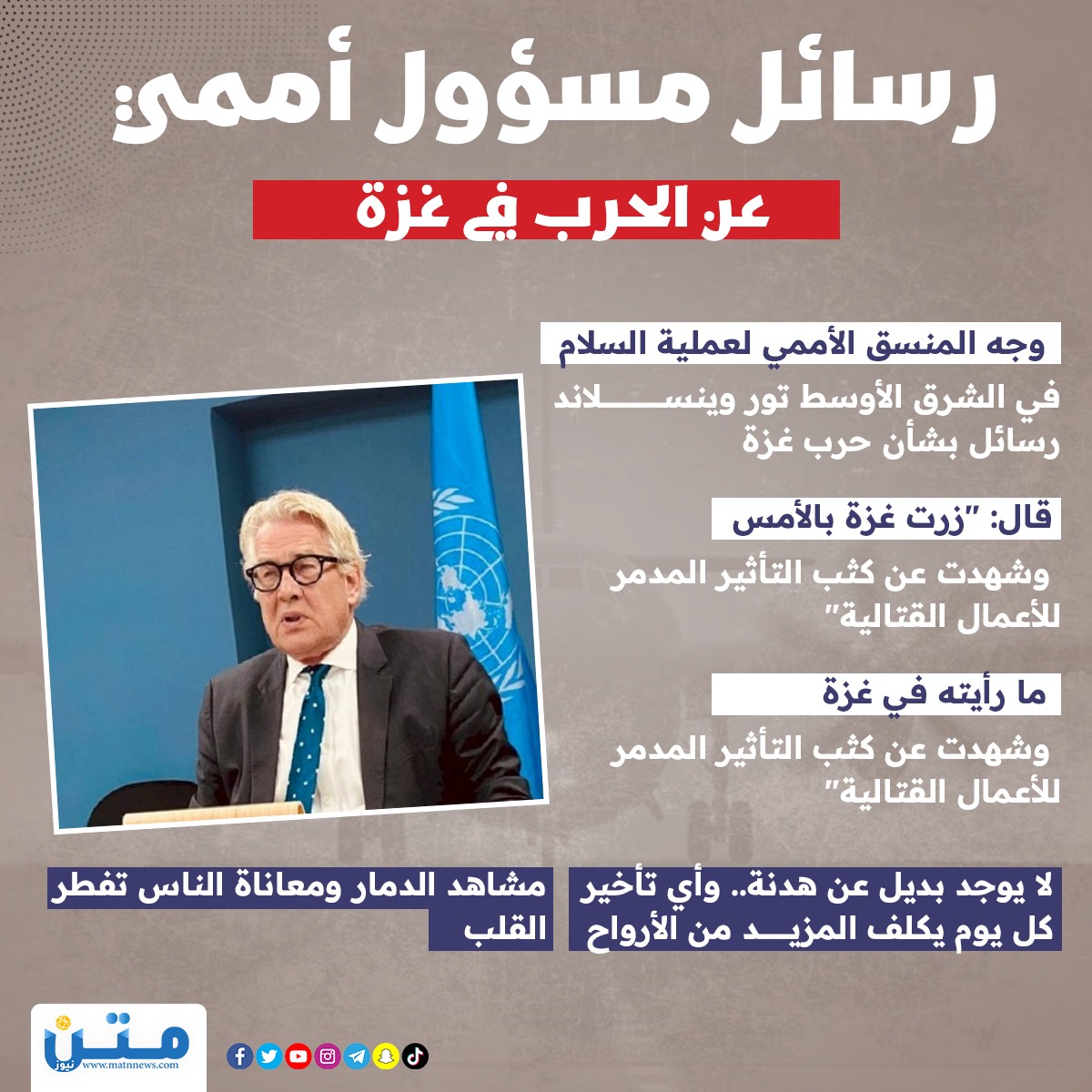 -وجه المنسق الأممي لعملية السلام في الشرق الأوسط تور وينسلاند رسائل بشأن حرب غزة