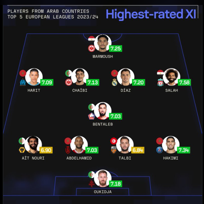تشكيل أفضل اللاعبين العرب في الدوريات الأوروبية