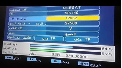 - - ثم بعد ذلك يتم الانتقال إلى قائمة الترددات، ليتم بعدها ادخال تردد قناة القاهرة الاخبارية.