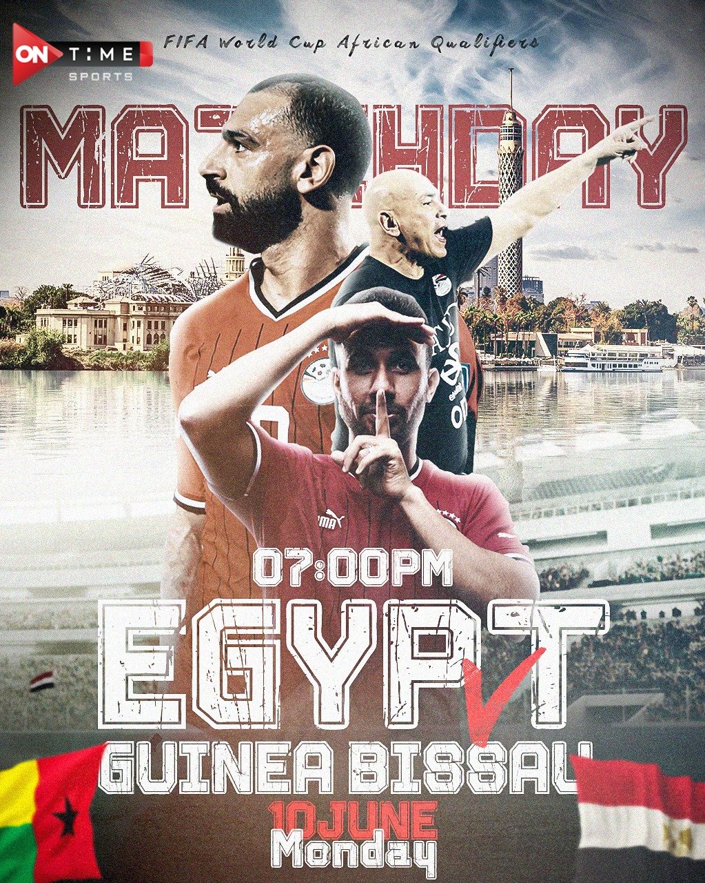 وكتب حساب قناة أون تايم عبر موقع التواصل الاجتماعي "فيس بوك": "انتظروا مباراة غينيا بيساو ومصر في الجولة الرابعة من التصفيات الأفريقية المؤهلة لكأس العالم 2026 الليلة في تمام 7:00 مساءً على قناة ON TIME SPORTS كونوا على الموعد".