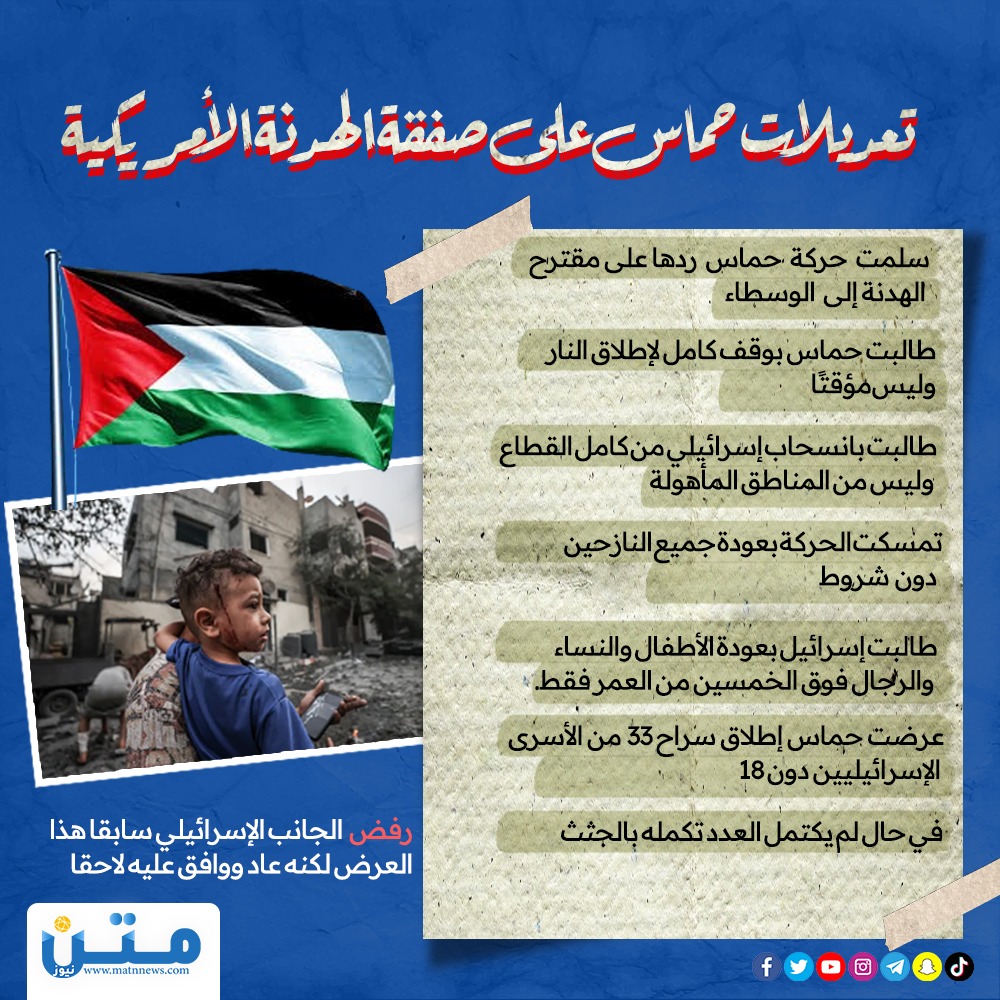 تعديلات حماس على صفقة الهدنة الأمريكية (إنفوجراف)