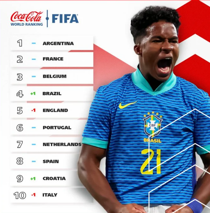 وجاء تصنيف الفيفا للمنتخبات العشر الأوائل، كالتالي: