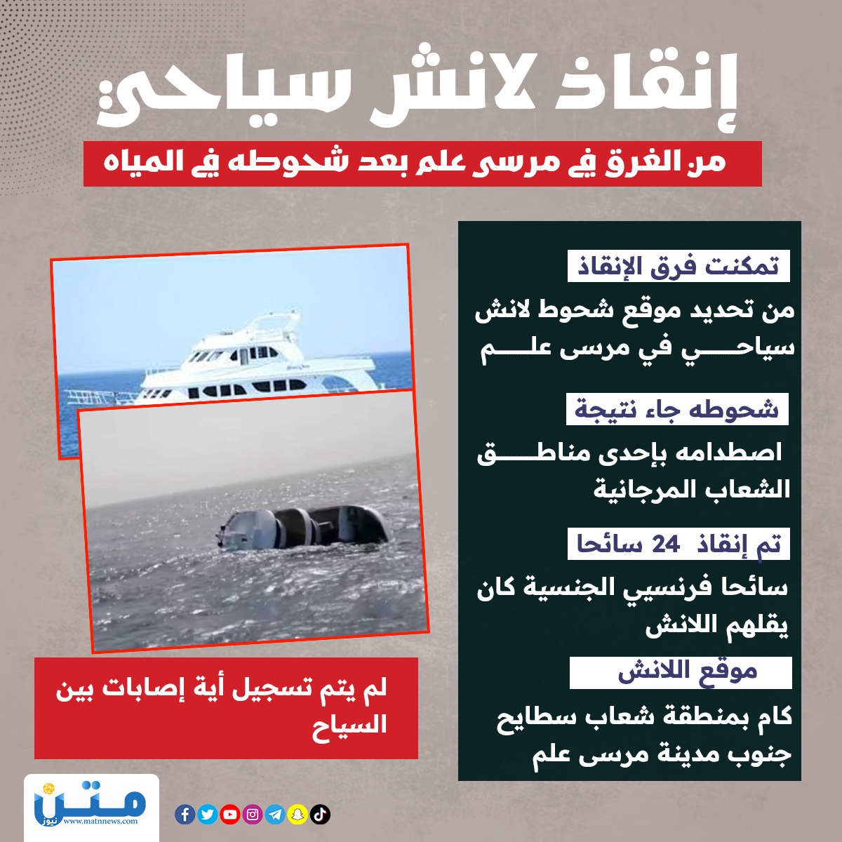 إنقاذ لانش سياحي من الغرق في مرسى علم بعد شحوطه في المياه (إنفوجراف)