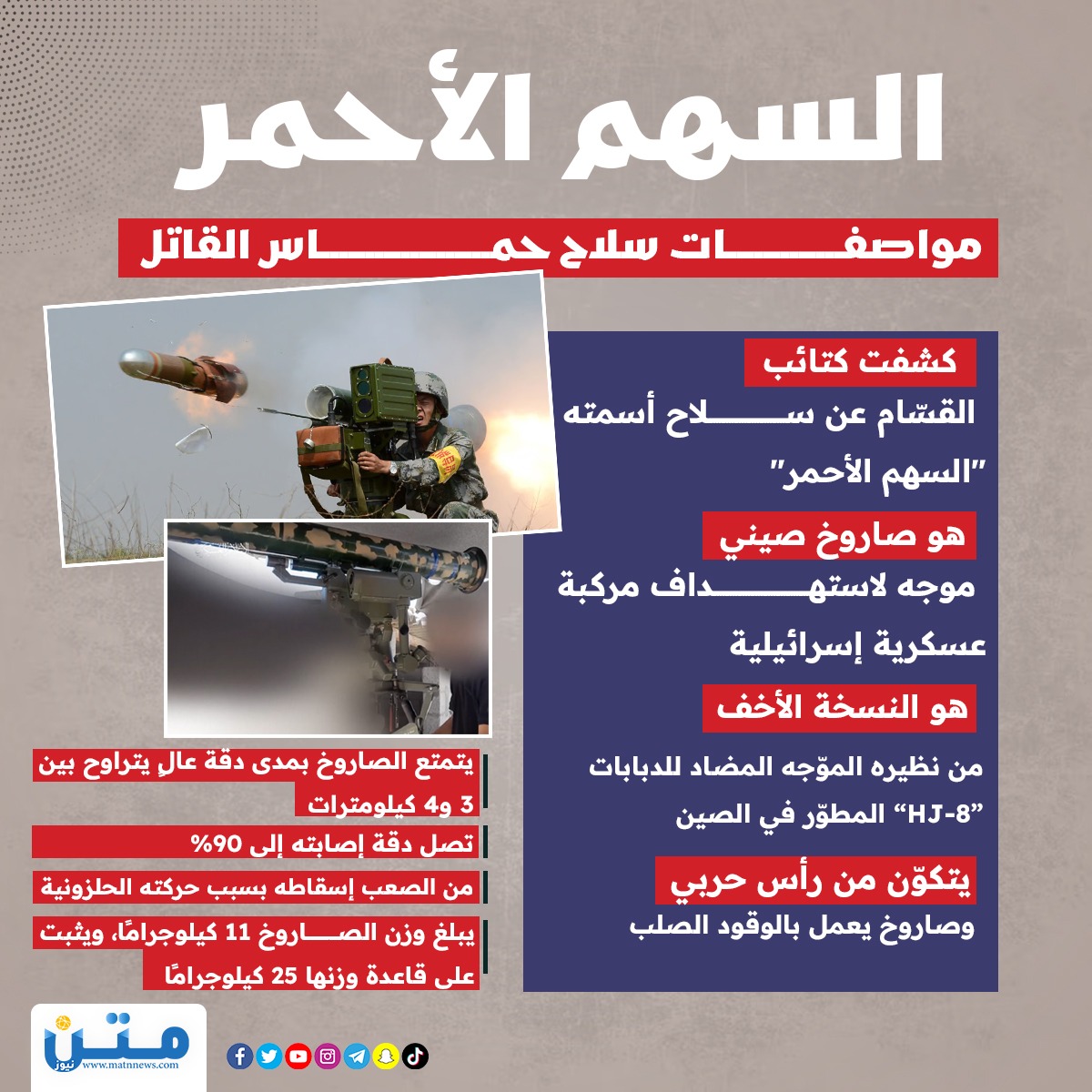 السهم الأحمر.. مواصفات سلاح حماس القاتل (إنفوجراف)