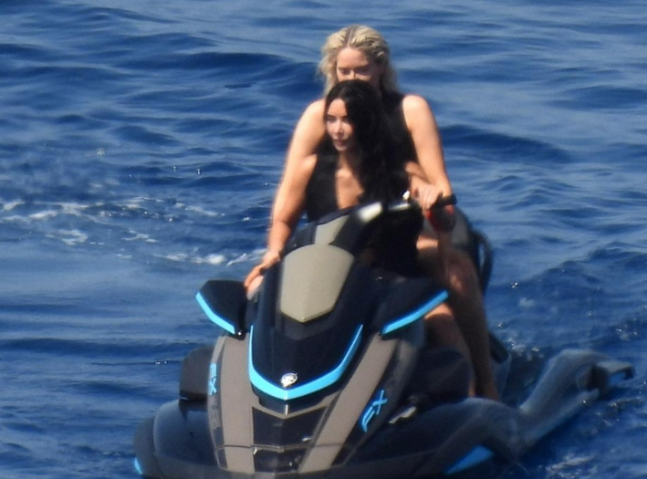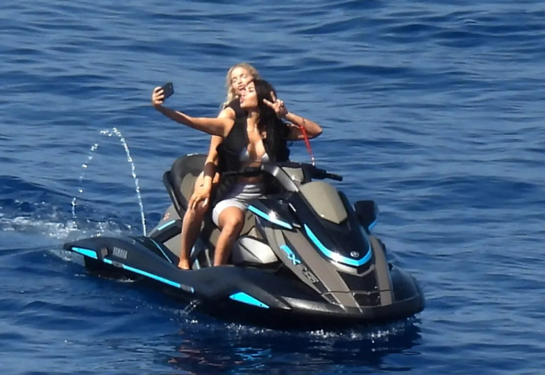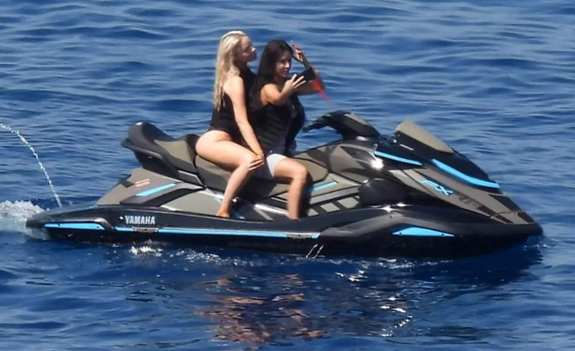 والتقطت الكاميرات نجمة تلفزيون الواقع وهي تتزلج على الماء برفقة صديقتها، بينما كانت تلتقط صور سيلفي في نفس الوقت.