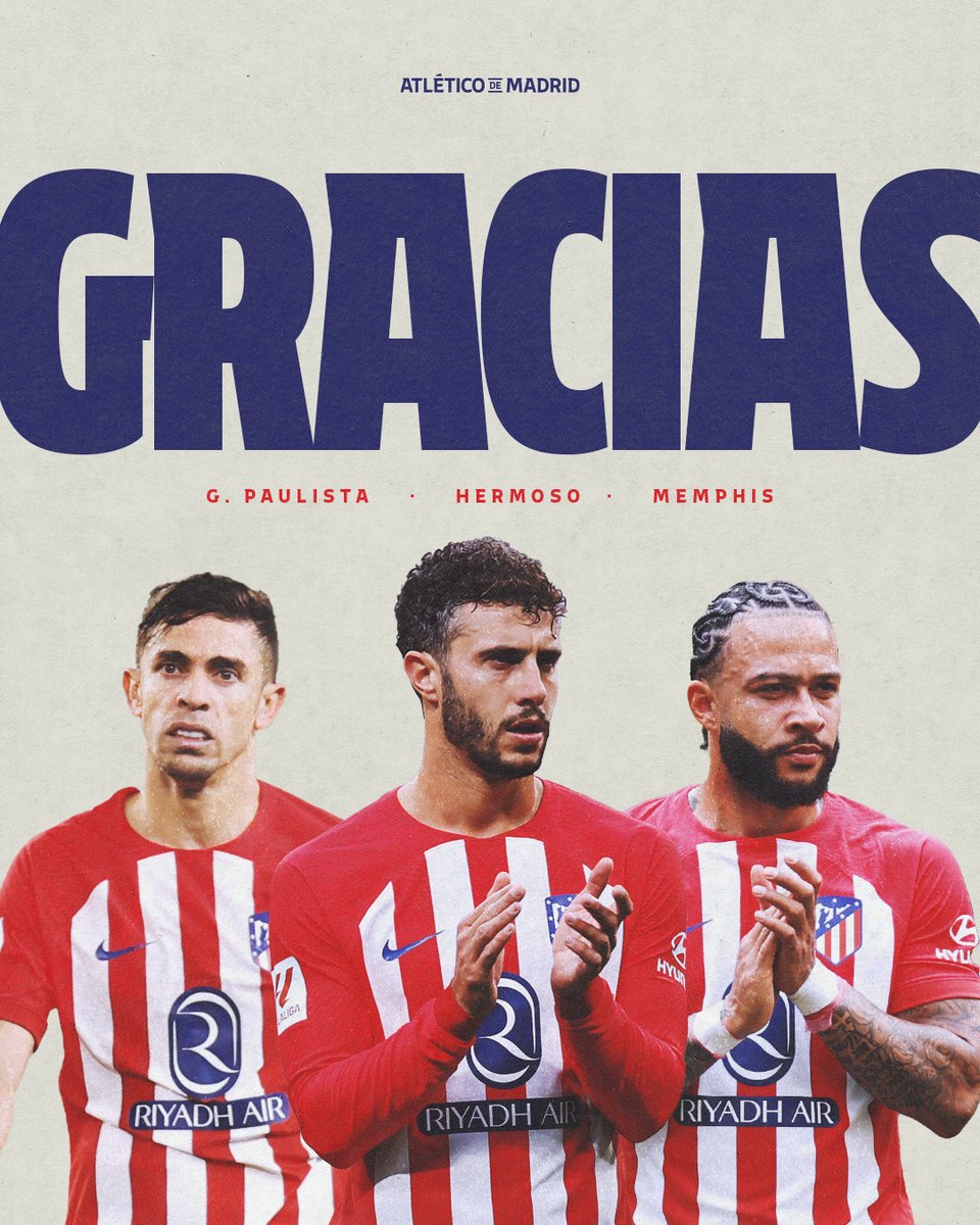وأصدر أتلتيكو مدريد بيانا رسميا، وجه خلاله الشكر لكل من ممفيس ديباي، ماريو هيرموسو، وجابرييل باوليستا، بعد انتهاء عقودهم مع كوماندوز مدريد اليوم الأحد 30 يونيو.