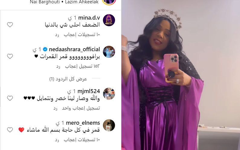 من بينهم، قالت الفنانة مي كساب: "بسم الله ما شاء الله قمر يا روح قلبي"، فيما أكدت أميرة مختار، ابنة الفنانة الراحلة رجاء الجداوي: "ما شاء الله ولا قوة إلا بالله، الله أكبر"، مرفقة برموز القلوب.