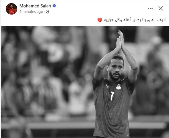 وكتب صلاح عبر حسابه الرسمي بموقع التواصل الاجتماعي "إكس" قائلا: "البقاء لله وربنا يصبر أهله وكل حبايبه".