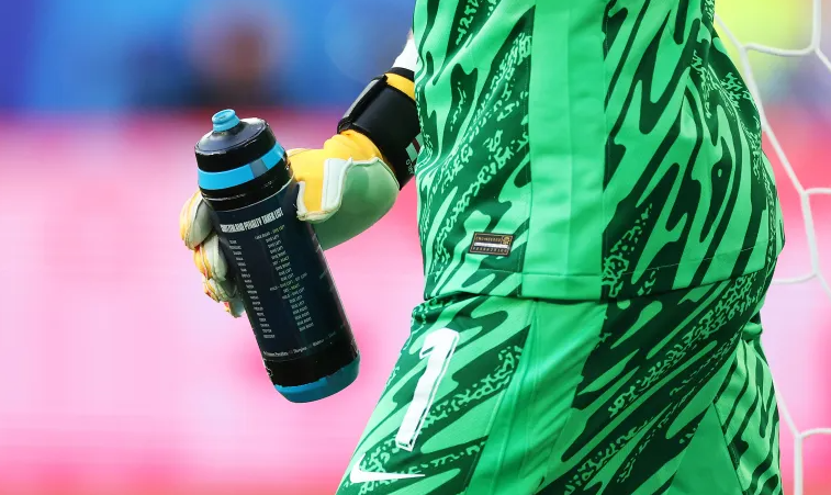 وأثار الحارس الإنجليزي الجدل على مواقع التواصل الاجتماعي بعد المباراة، وذلك بعد ظهوره بزجاجة كان مكتوبًا عليها معلومات تتعلق بطريقة تسديد لاعبي المنتخب السويسري ركلات الترجيح.