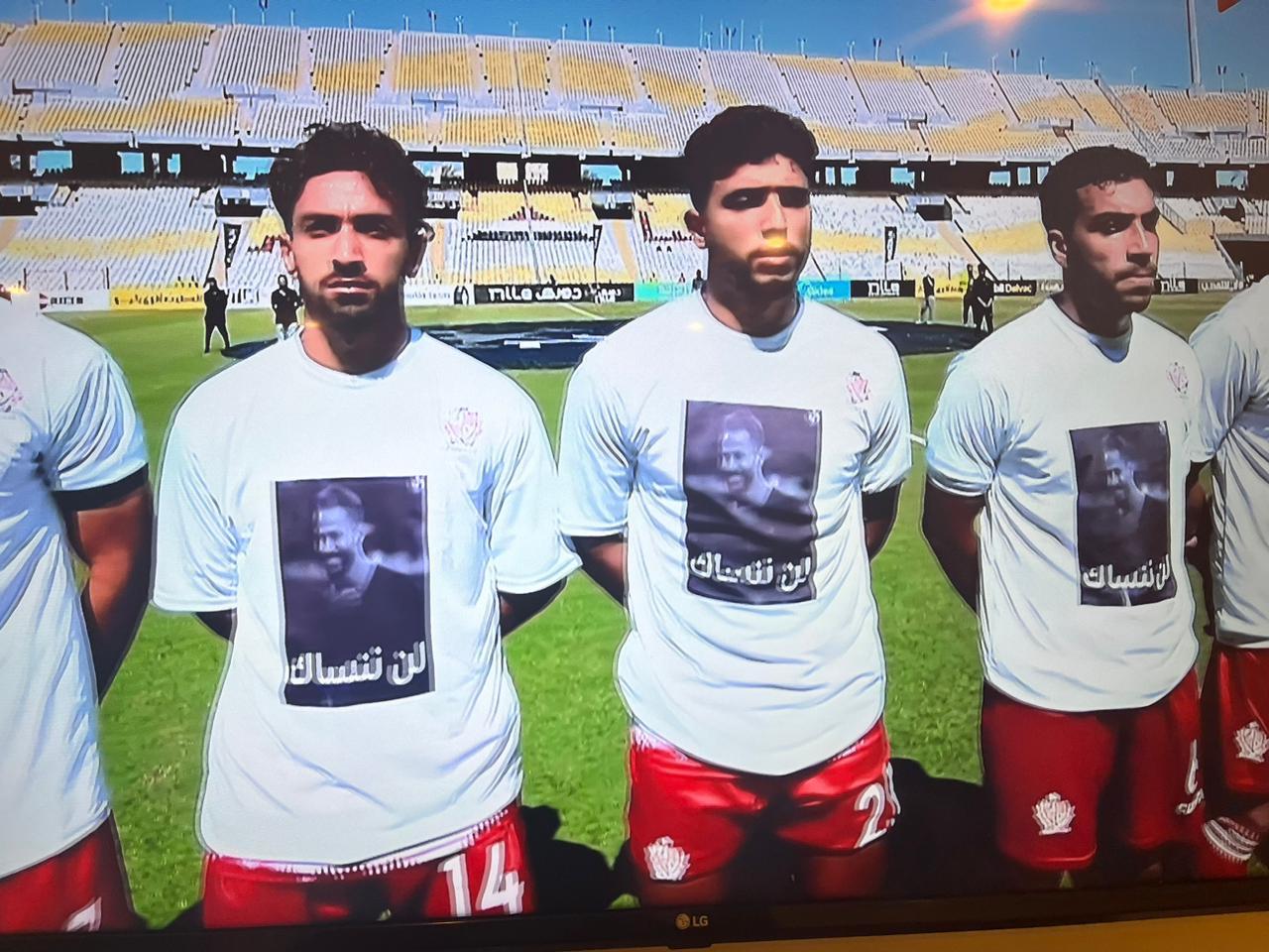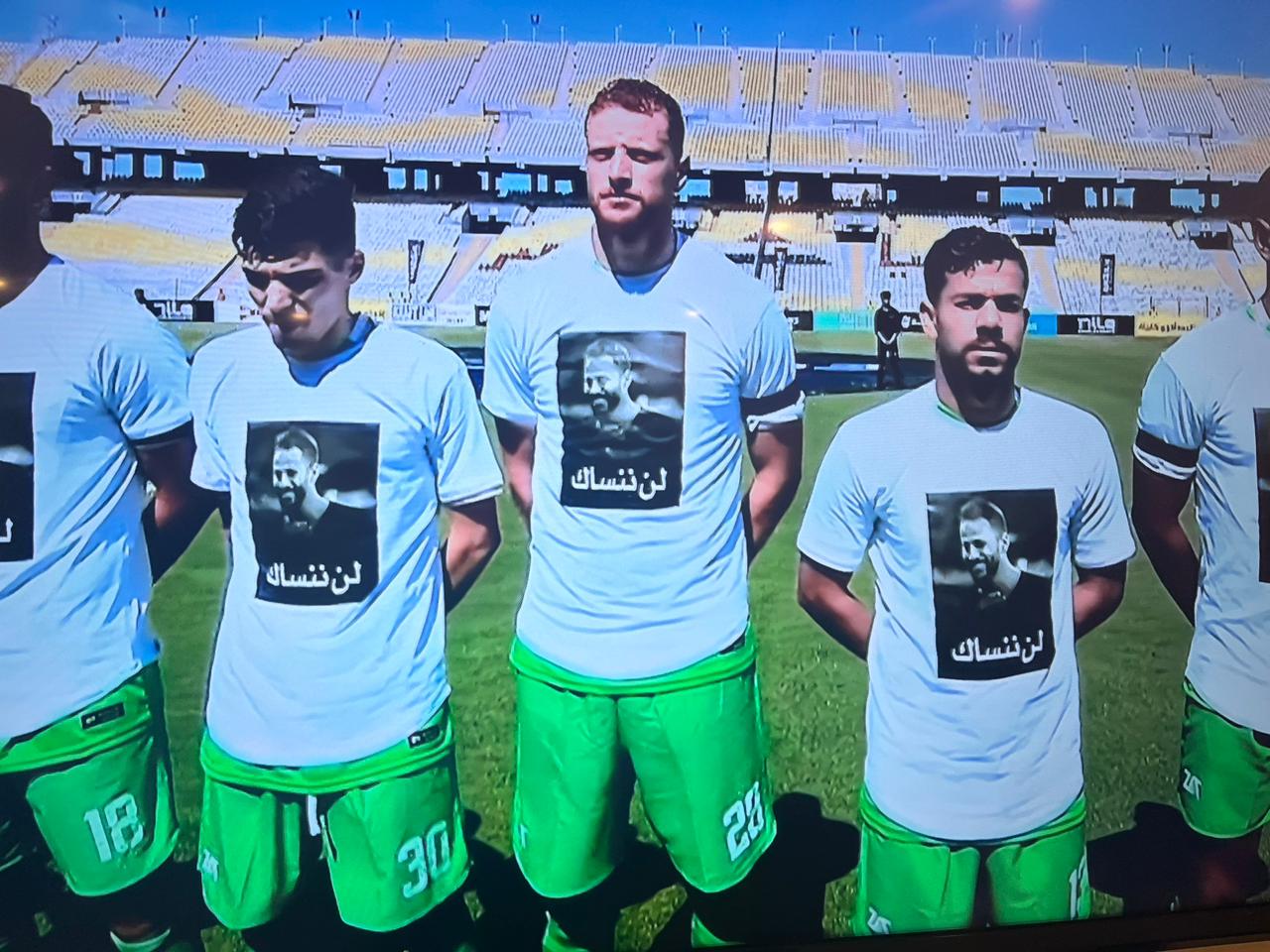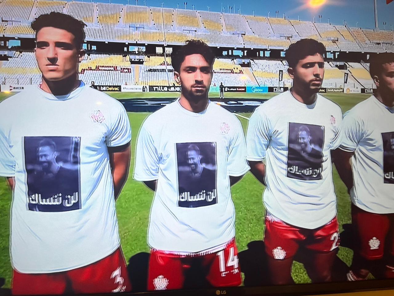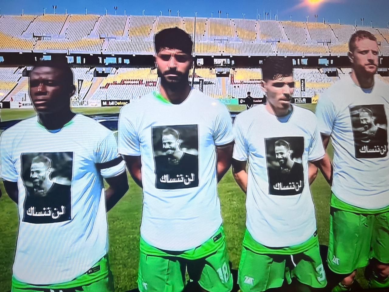 لاعبو المصري وبلدية المحلة يرتدون قمصانا تحمل صورة أحمد رفعت