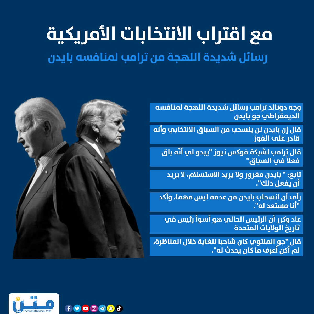 مع اقتراب الانتخابات الأمريكية.. رسائل شديدة اللهجة من ترامب لمنافسه بايدن (إنفوجراف)