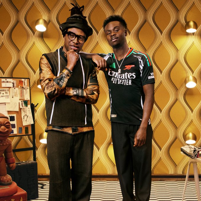 وظهر في الإعلان عن القميص من لاعبي أرسنال كل من بوكايو ساكا وجابرييل ماجاليس.