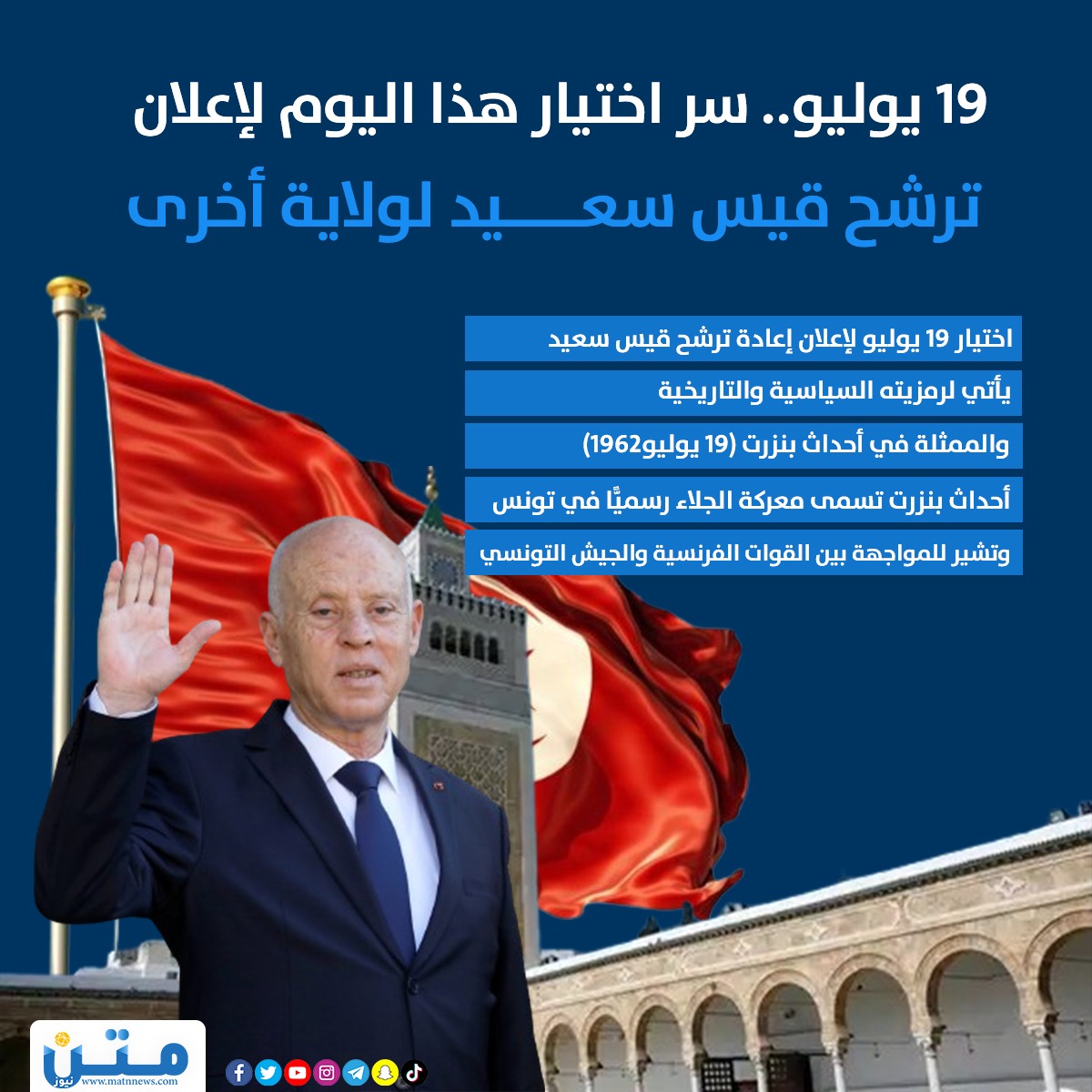 19 يوليو.. سر اختيار هذا اليوم لإعلان ترشح قيس سعيد لولاية أخرى (انفوجراف)