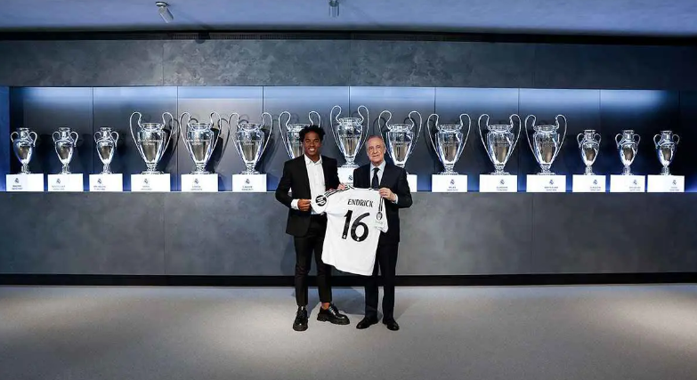 وخلال التقديم ارتدى إندريك قميص ريال مدريد للمرة الأولى بالرقم 16 الذي سيرتديه مع الفريق.