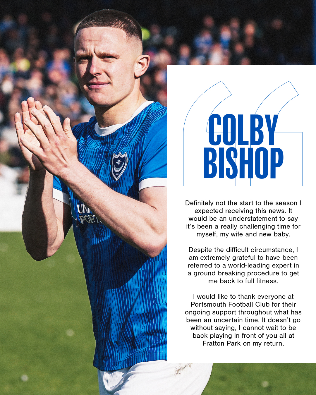 وقال النادي إن أي تحديثات بشأن عودة بيشوب ستكون بعد إجراء الجراحة، مضيفا: "الجميع في نادي بورتسموث يدعمون كولبي وعائلته بشكل كامل".