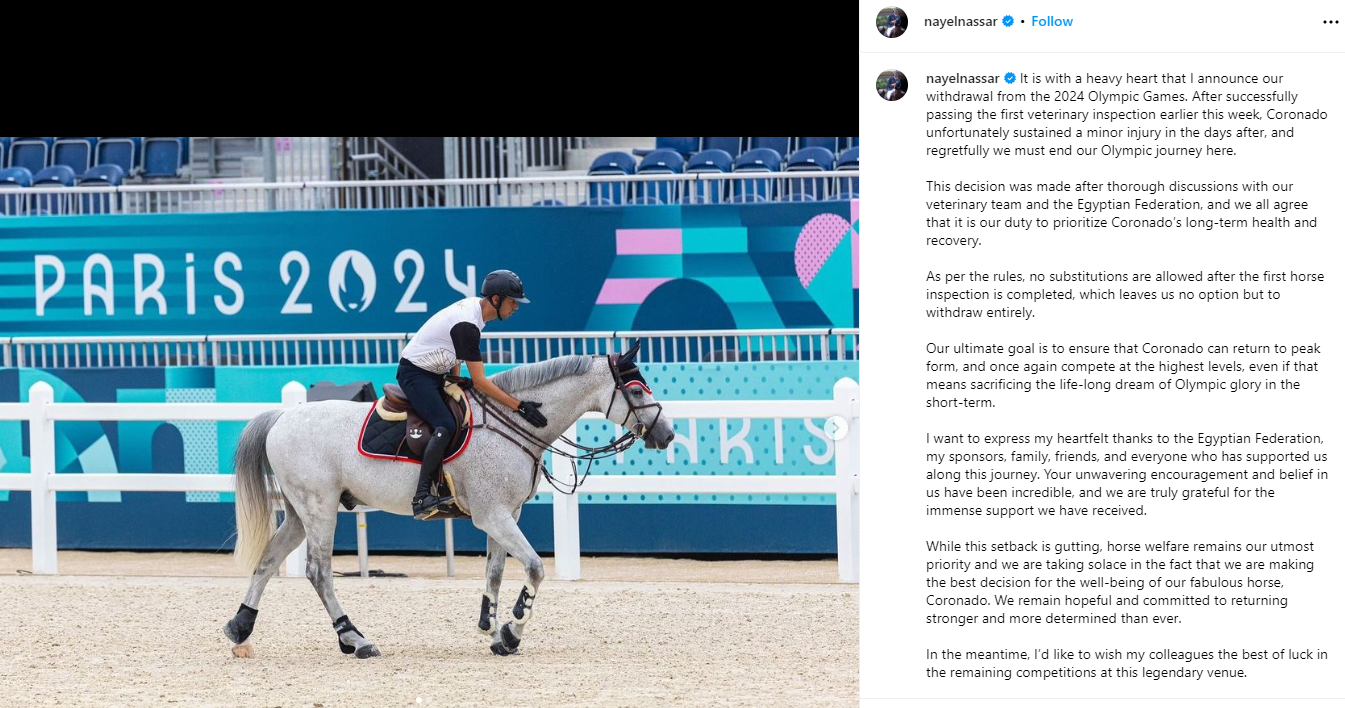 الأولوية لصحة "كورونادو".. أول تعليق من الفارس نائل نصار بعد انسحابه من أولمبياد باريس