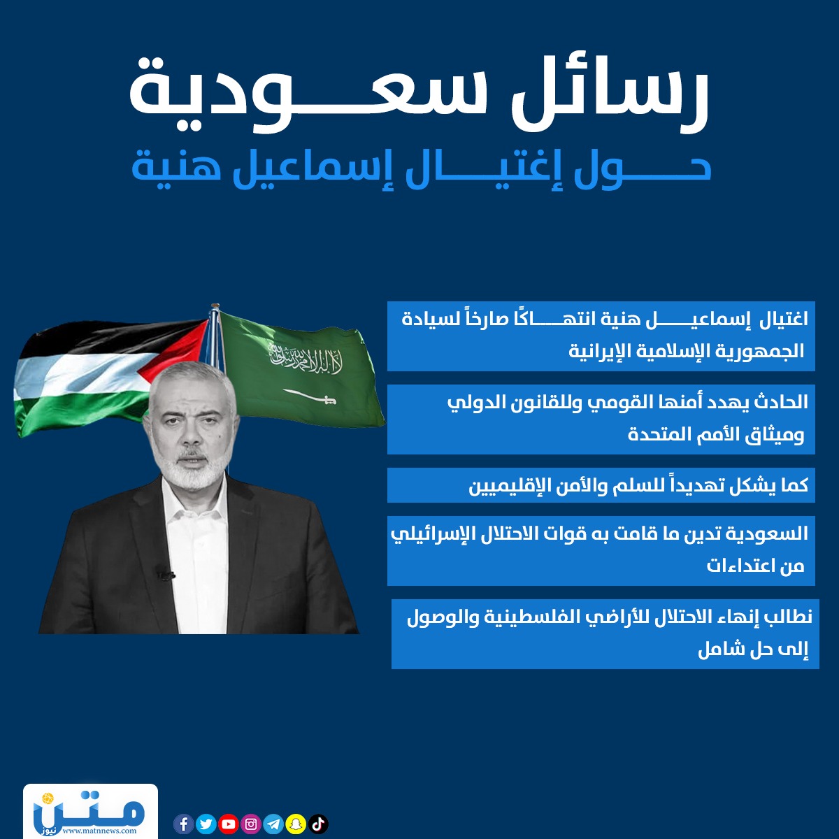 رسائل سعودية حول إغتيال إسماعيل هنية (إنفو جراف)