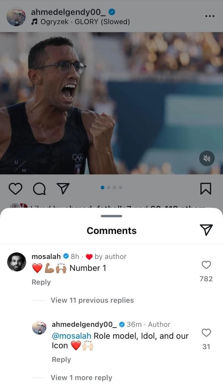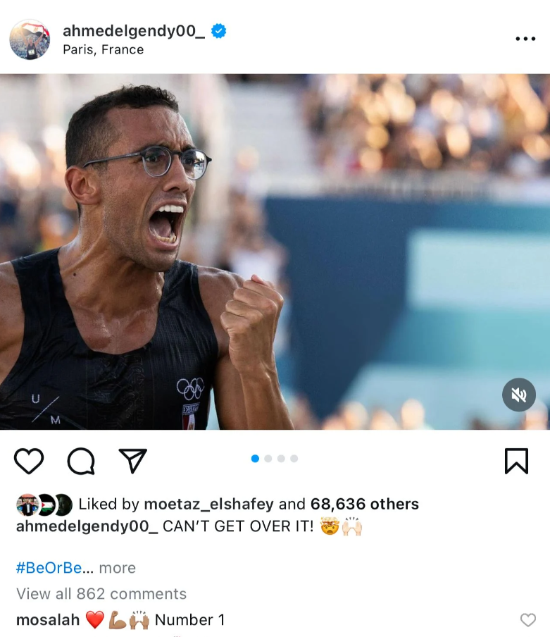 محمد صلاح يعلق على صورة أحمد الجندي بطل ذهبية أولمبياد باريس (صورة)