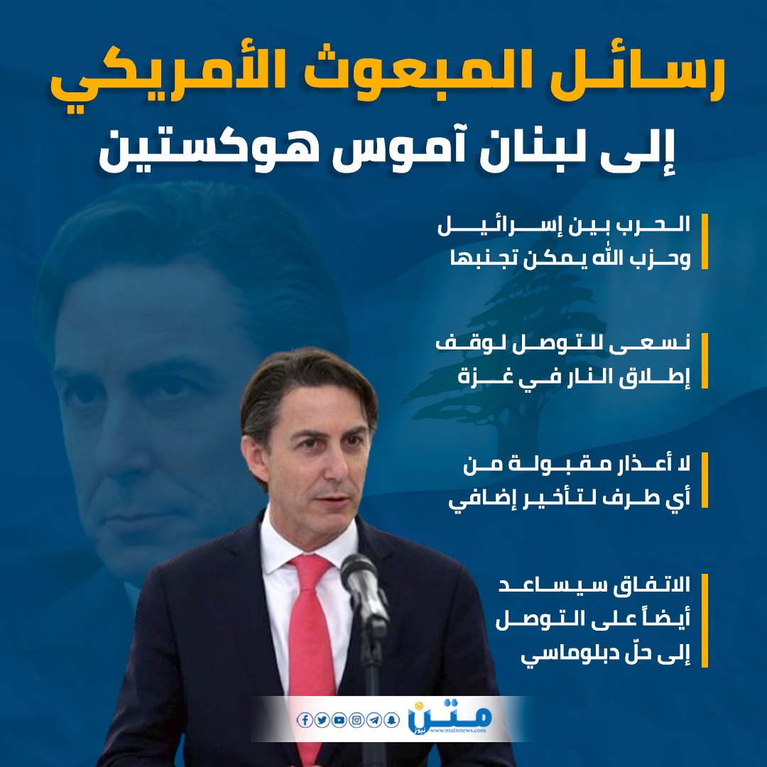 رسائل المبعوث الأمريكي إلى لبنان آموس هوكستين (إنفوجراف)