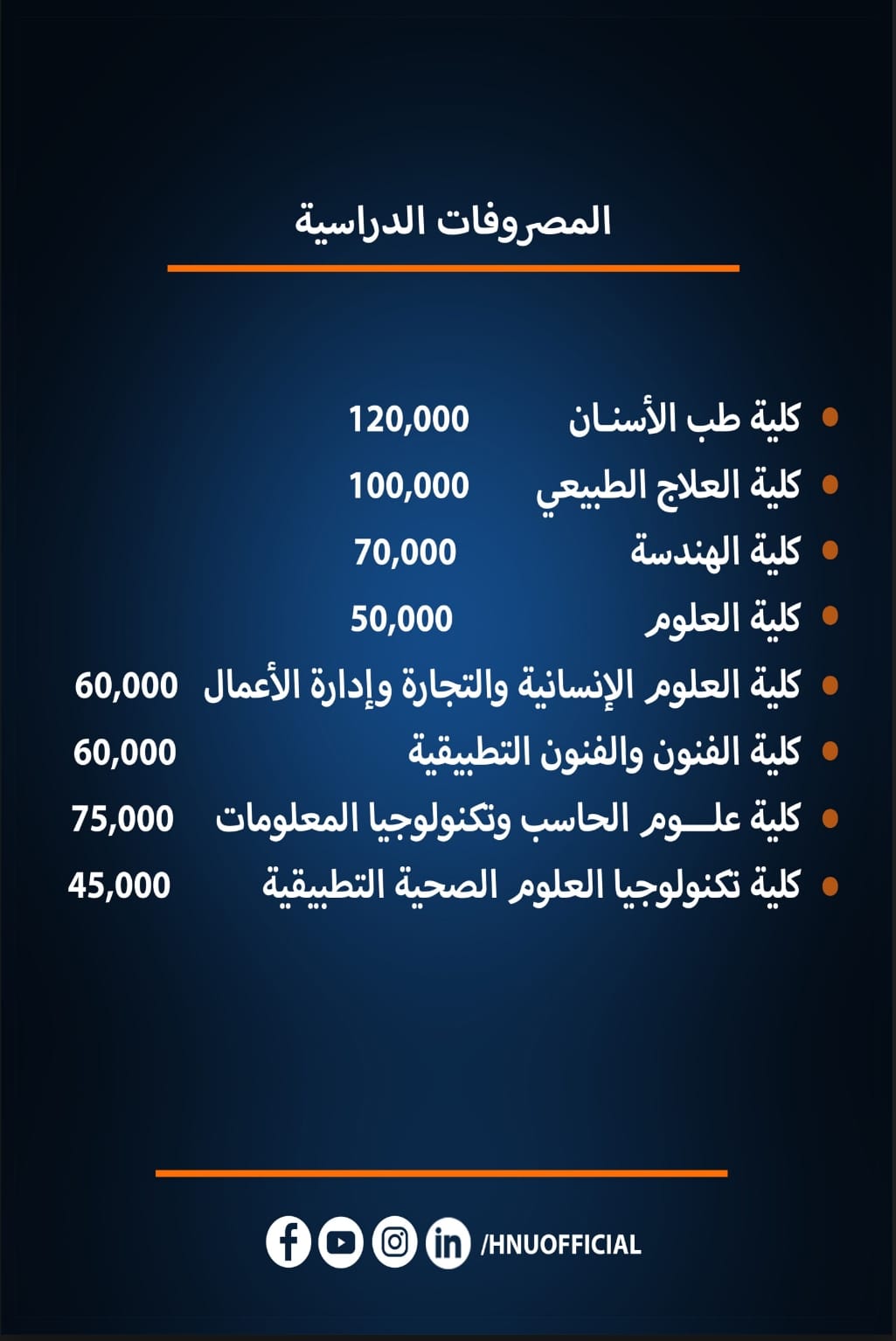 - ويضاف إلى مصاريف جامعة حلوان الأهلية 1500 جنيها مصاريف رسوم التسجيل بالجامعة ولا تسترد بأي حال من الأحوال.