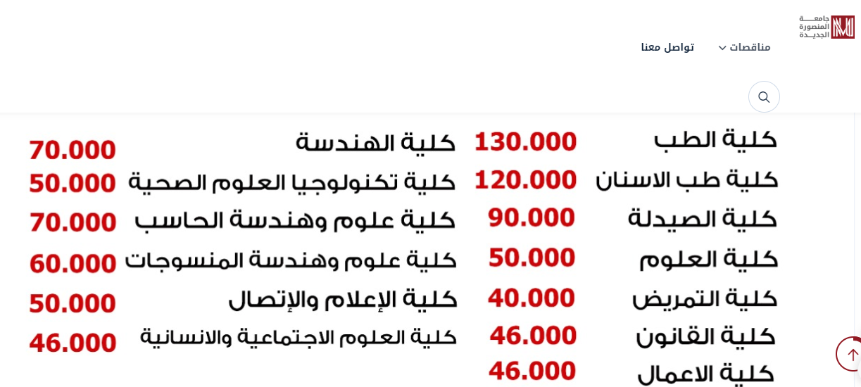 مصاريف جامعة المنصورة الجديدة 2024-2025