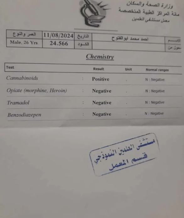 وأوضح الدكتور جمال عبد الرازق عبد العال رئيس مصلحة الطب الشرعي بالإسكندرية والبحيرة ومطروح، في شهادته أمام جهات التحقيق، بعدم وجود عقاقير طبية مصرح بتداولها داخل مصر تحوي في تكوينها جوهر الحشيش أو المادة الفعالة له، مقررا أن متعاطي جوهر الحشيش المخدر يكون لدية اضراب في تحديد المسافة والزمن بشكل مخالف للشخص الطبيعي.