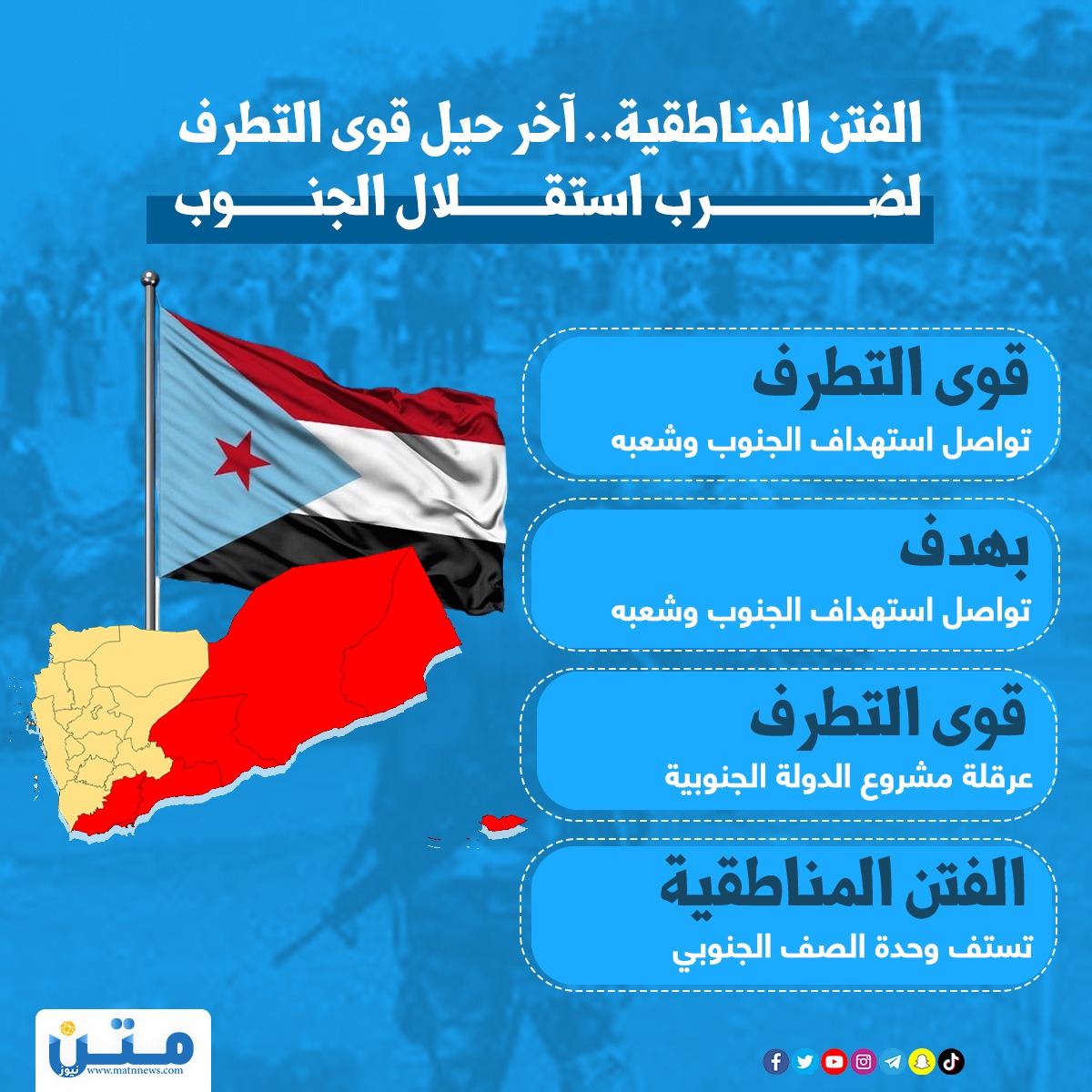 الفتن المناطقية.. آخر حيل قوى التطرف لضرب استقلال الجنوب (انفوجراف)