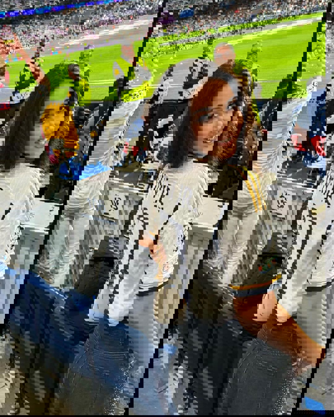 وشوهدت ياسمين في ملعب "سانتياجو برنابيو" مساء الأحد، خلال مباراة ريال مدريد ضد بلد الوليد، التي انتهت بفوز الفريق الملكي بثلاثية نظيفة.