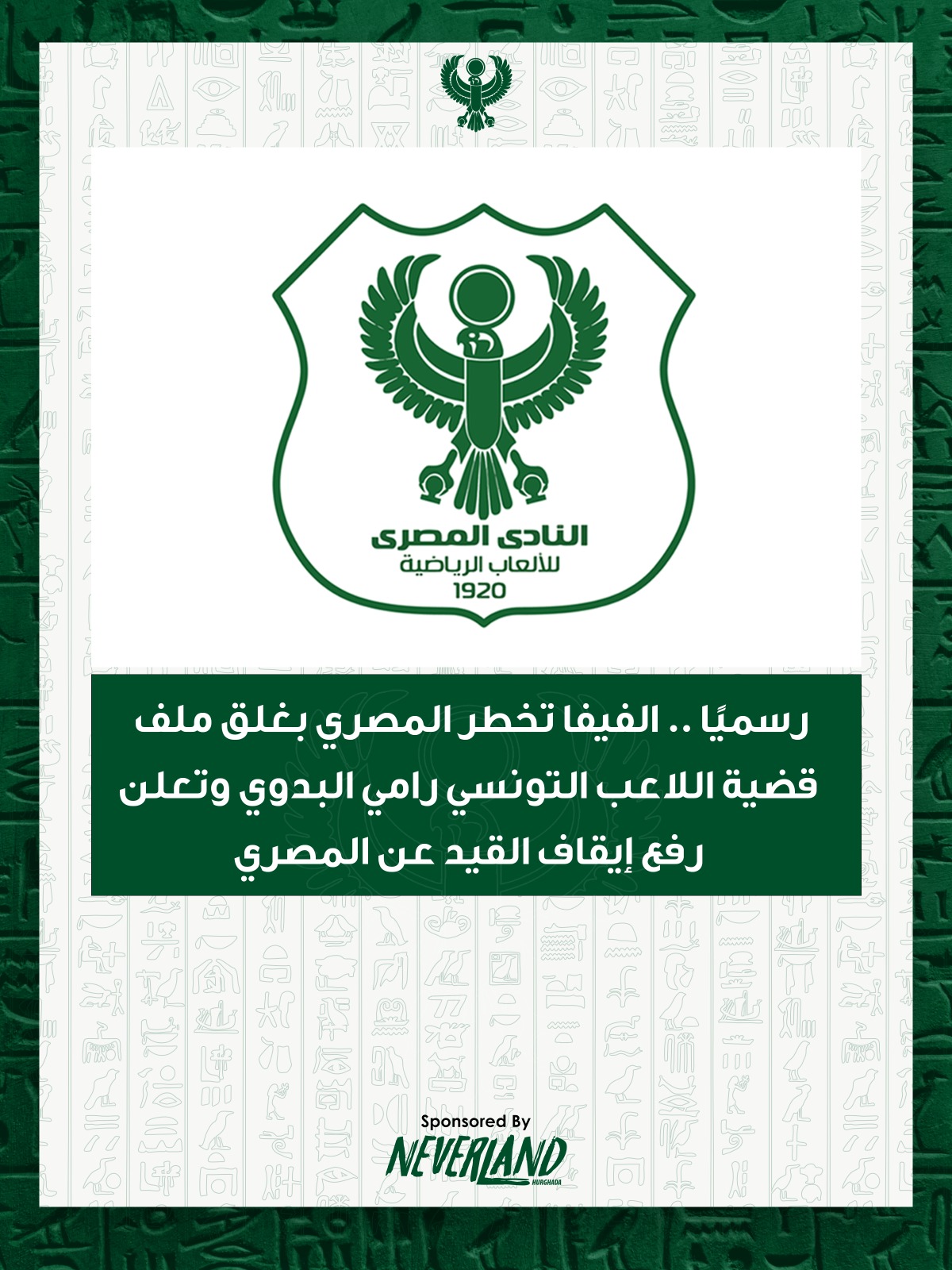وتلقت إدارة النادي المصري البورسعيدي، خطابًا رسميًا من الاتحاد الدولي لكرة القدم " فيفا " يخطرها من خلاله بغلق ملف قضية اللاعب التونسي رامي البدوي نهائيًا، وذلك بعد قيام مجلس إدارة النادي بسداد مستحقات اللاعب كاملة والبالغة نحو 530 ألف دولار.