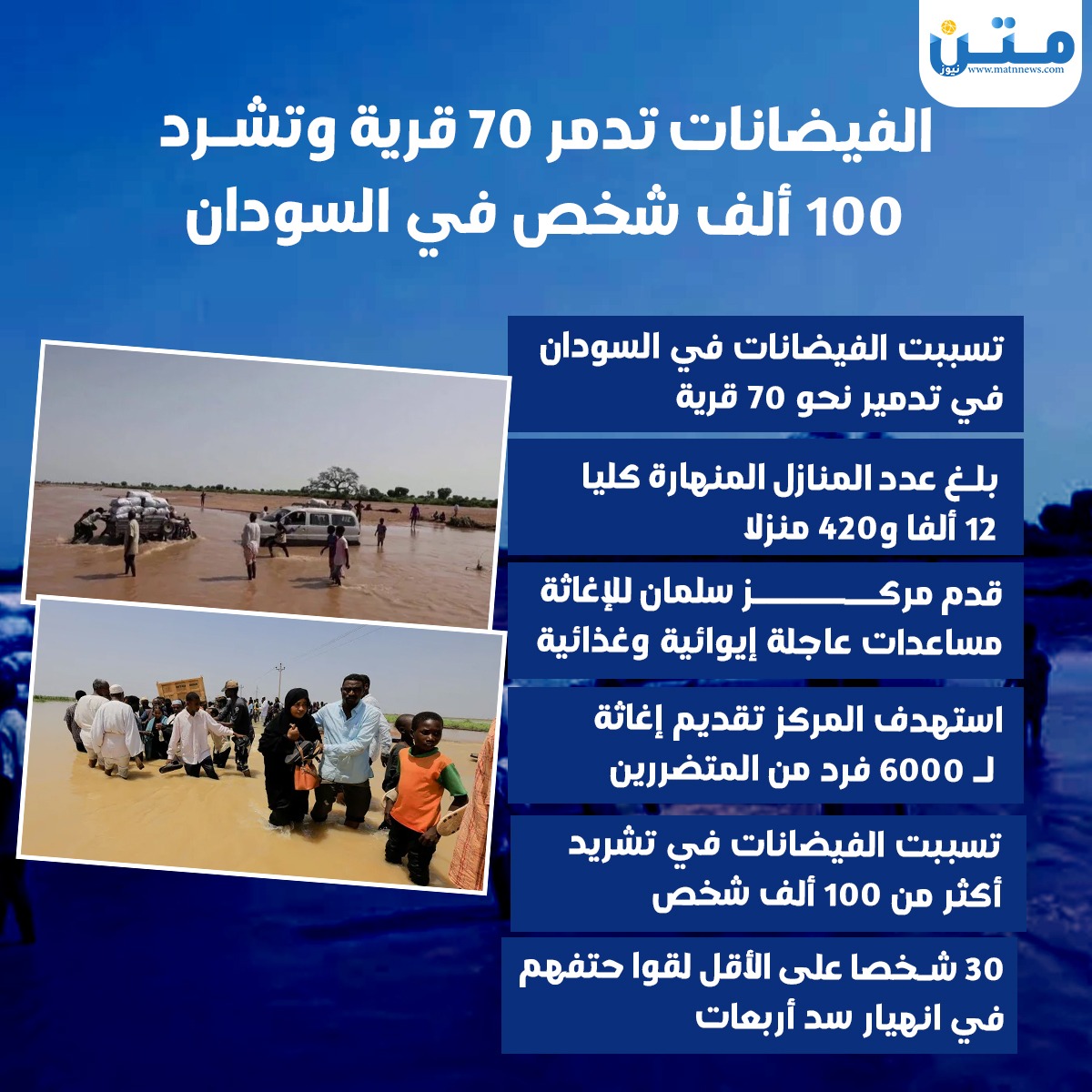 - تسببت الفيضانات في السودان في تدمير نحو 70 قرية