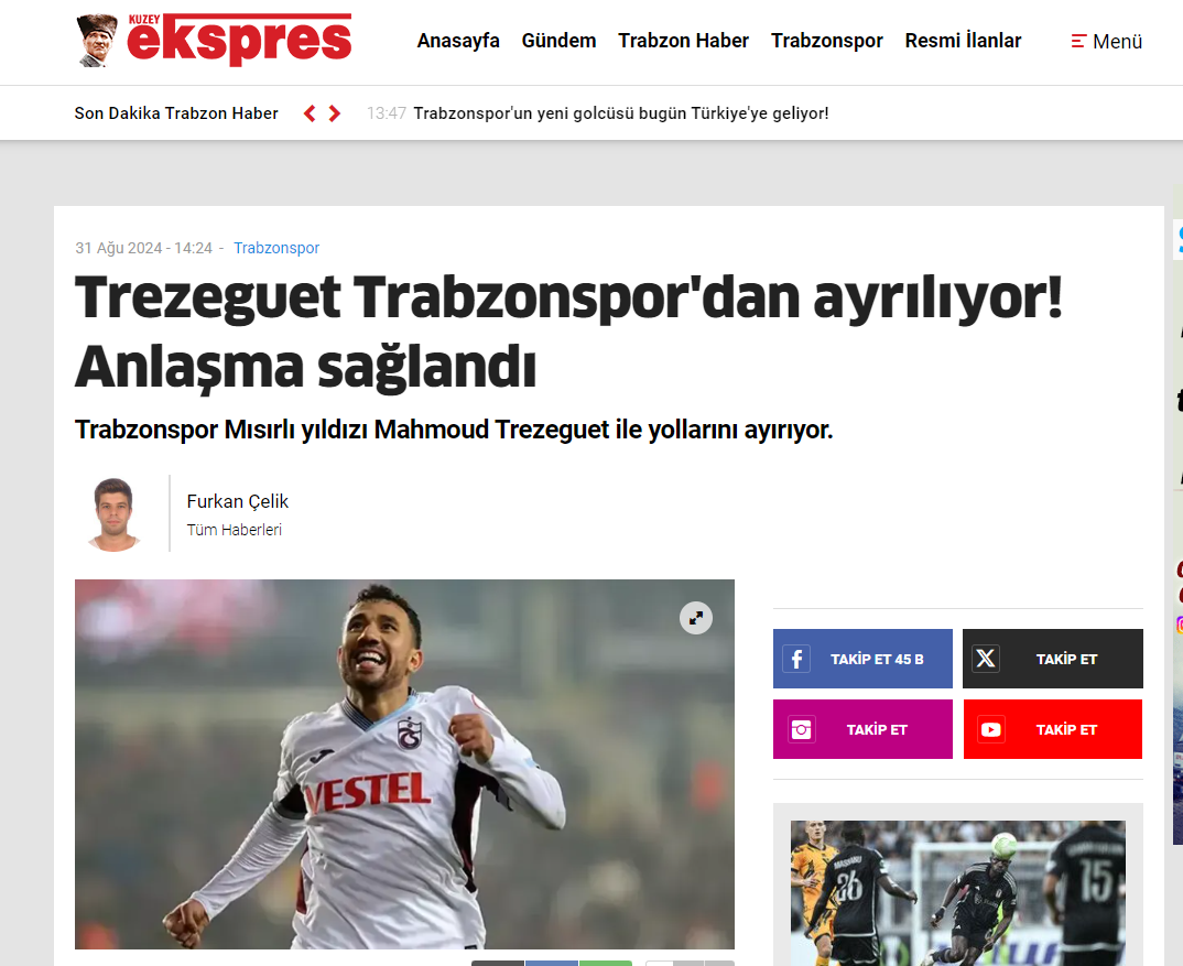 وأضاف أن طرابزون رفض العرض المقدم من قبل الفتح السعودي للحصول على خدمات تريزيجيه، حيث اتفق مع الريان على إعارة نجم منتخب مصر.