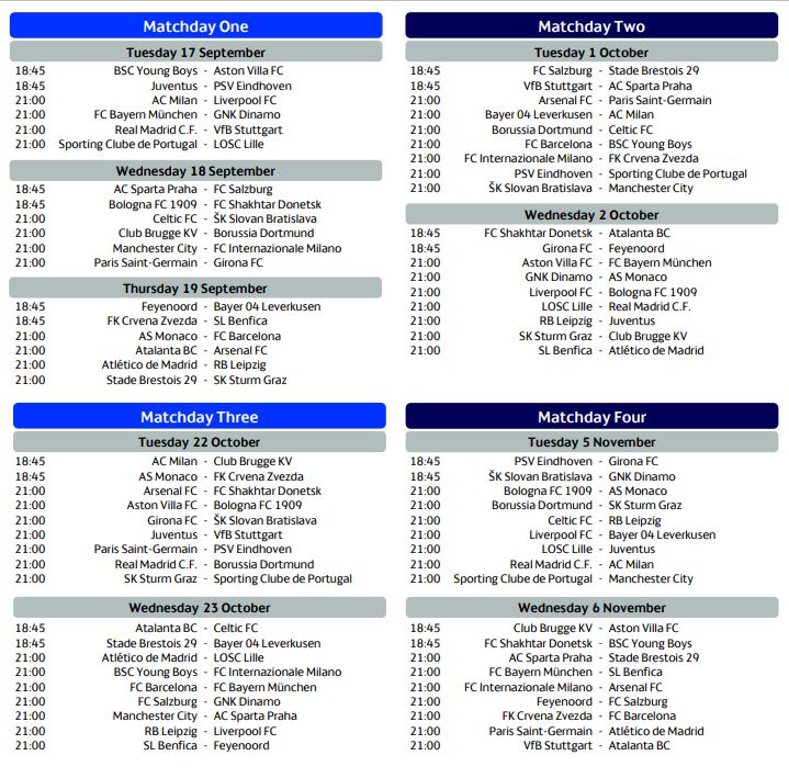 كشف الاتحاد الأوروبي لكرة القدم "يويفا"، اليوم السبت، بشكل رسمي مواعيد الموسم الجديد من دوري أبطال أوروبا في نظامه الجديد.