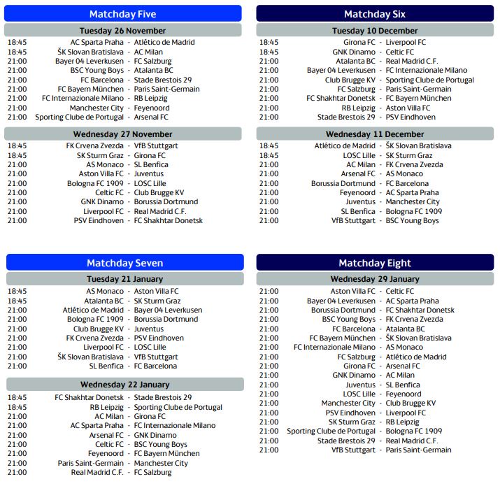 فيما حافظ يويفا على فكرة إقامة مباراتين مبكرا عن بقية المباريات.