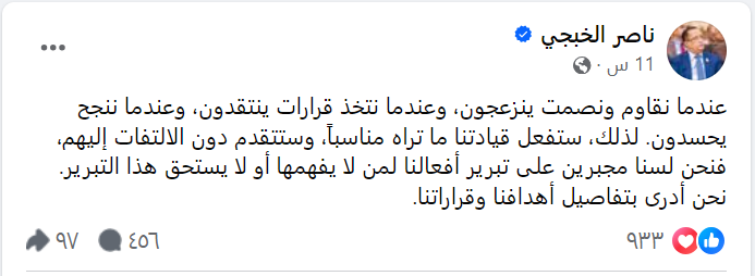 ناصر الخبجي: نحن أدرى بتفاصيل أهدافنا وقراراتنا