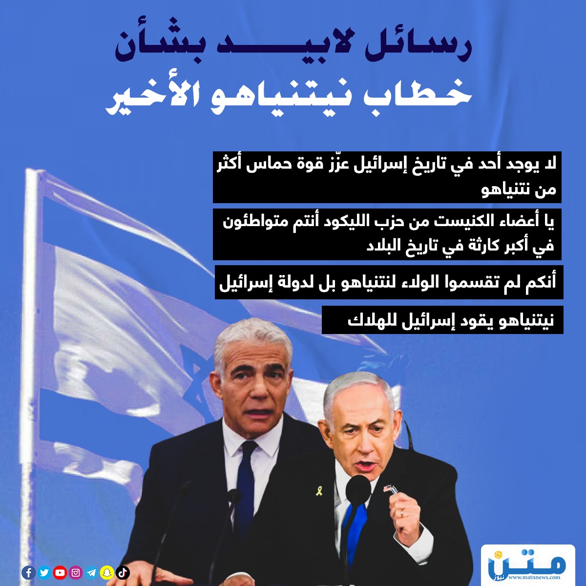 رسائل لابيد بشأن خطاب نيتنياهو الأخير (إنفوجراف)